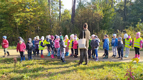 Dzisiaj przedszkolaki z najstarszych grup wybrały się na spotkanie do Nadleśnictwa w Piasku. Dzieci obejrzały pouczający film o dziku Ryjku oraz mieszkańcach lasu, zwiedziły teren Nadleśnictwa oraz wyszły na spacer do lasu z leśniczym, aby tam bliżej poznać roślinność oraz sposób zachowania się w lesie.